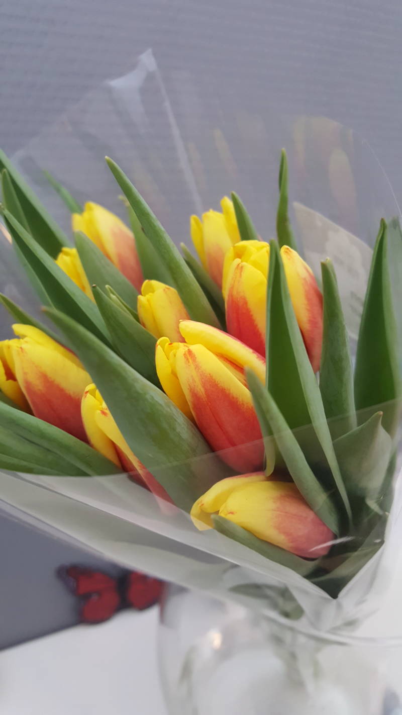 Soms is je werkdag zomaar ineens nog leuker: een lieve klant bracht een bosje tulpen mee. Nou, daar word ik spontaan helemaal blij van!